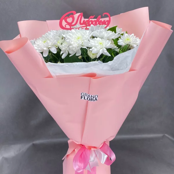 Когда я получила букет из белых кустовых хризантем в пудровой упаковке, я была поражена его красотой и элегантностью. Кустовые хризантемы были свежими и крепкими, а их белый цвет был чистым и ярким. Упаковка, выполненная в пудровом цвете, добавляла к букету изысканности и стиля. Я была очень довольна этим подарком и рекомендую его всем, кто ищет красивый и изысканный букет для своих близких и друзей. Спасибо за такой прекрасный букет!
